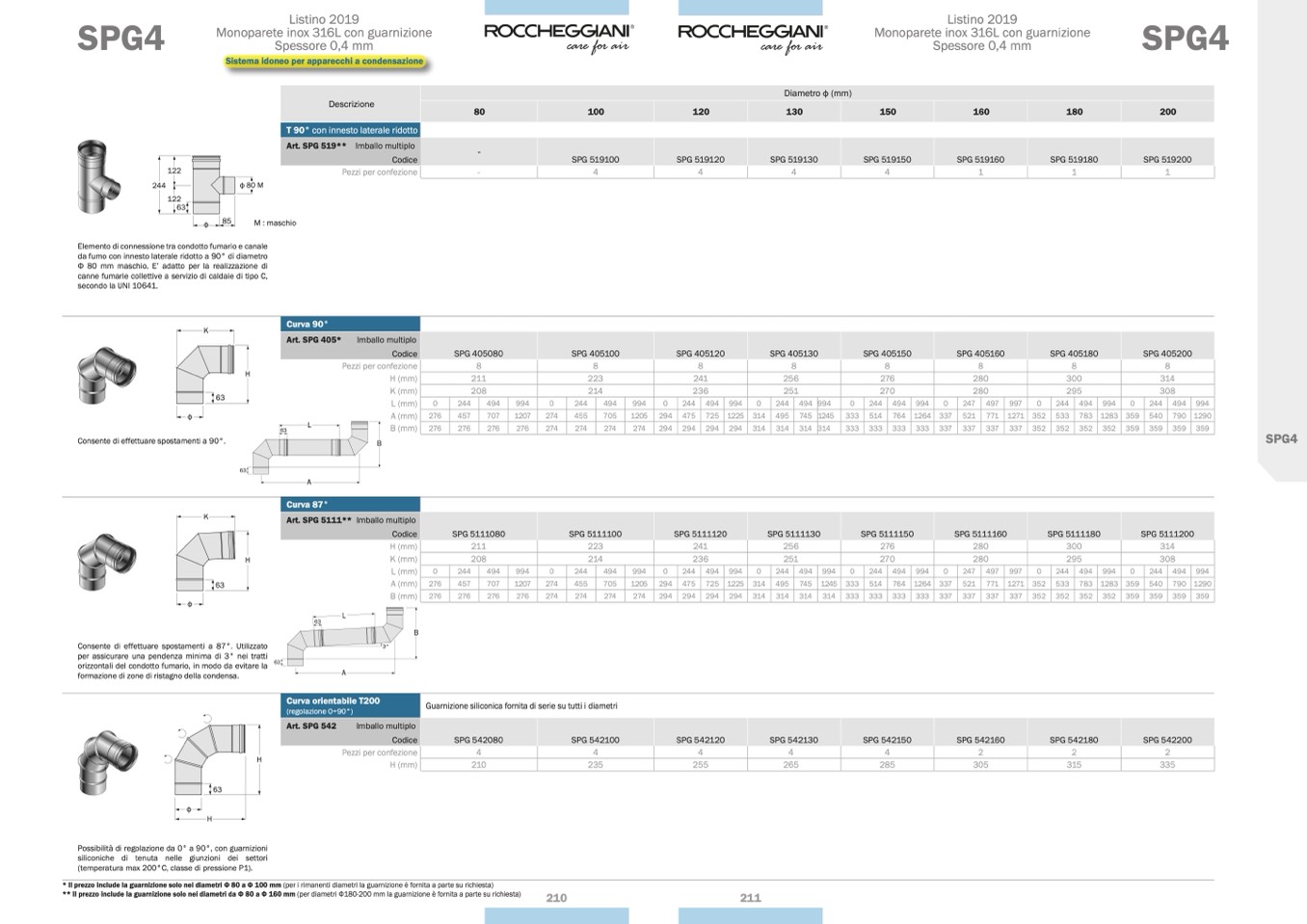 * Il prezzo include la guarnizione solo nei diametri Ф 80 a Ф 100