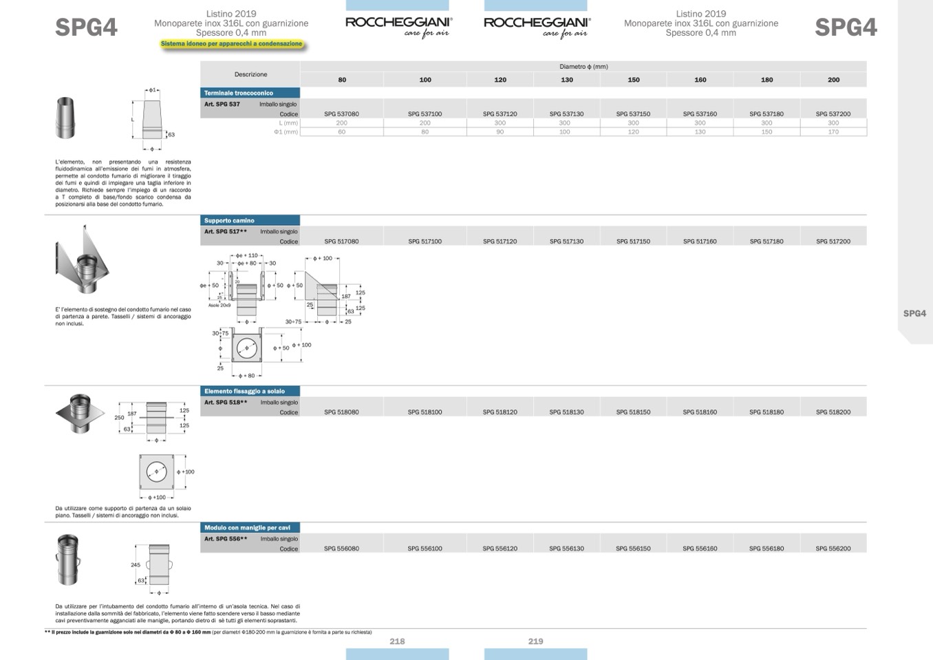 ** Il prezzo include la guarnizione solo nei diametri da Ф 80 a Ф 160 mm (per diametri Ф180-200 mm la guarnizione è fornita a parte su richiesta)