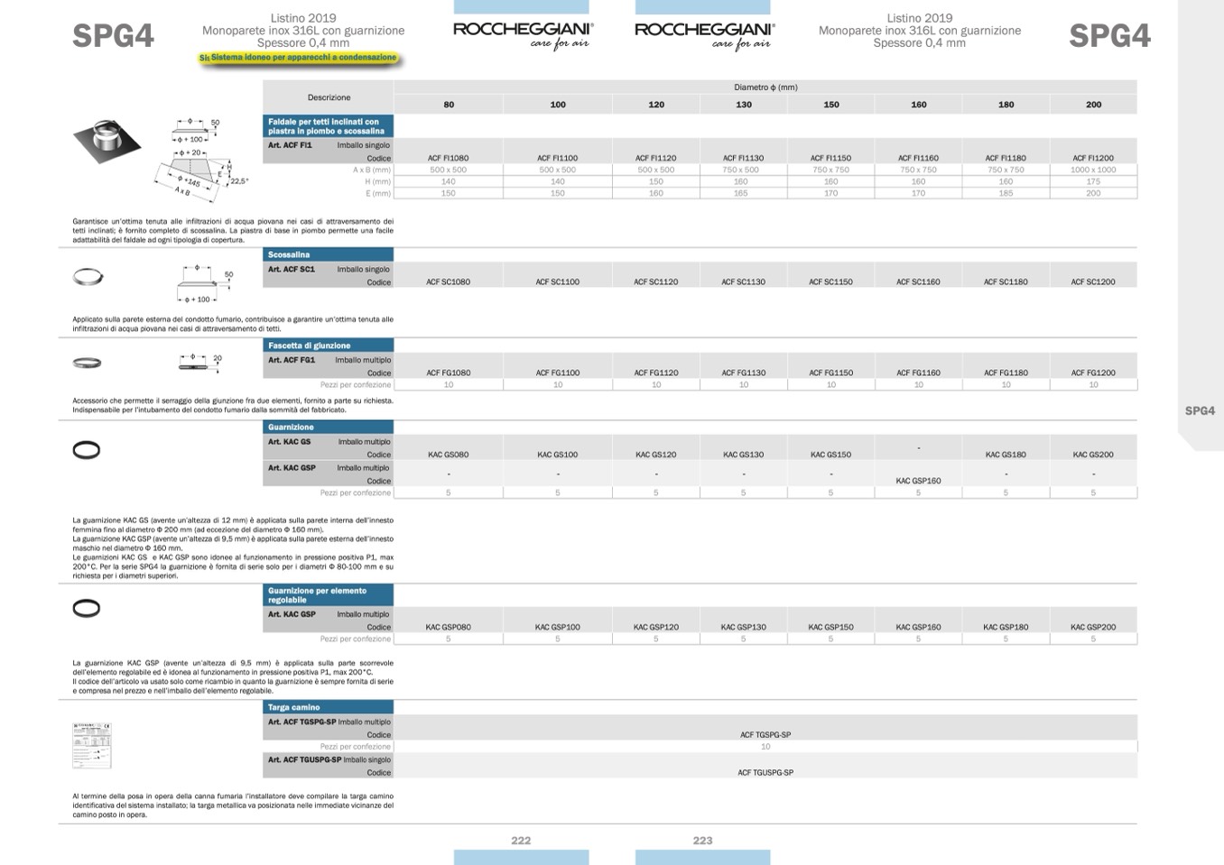200°C. Per la serie SPG4 la guarnizione è fornita di serie solo per i diametri Ф 80-100 mm e su