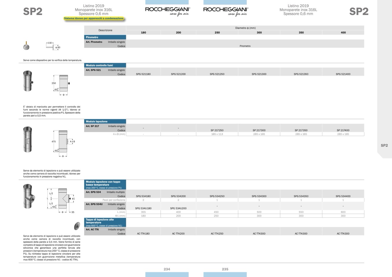 max 600°C, classe di pressione N1 - codice AC TTK).