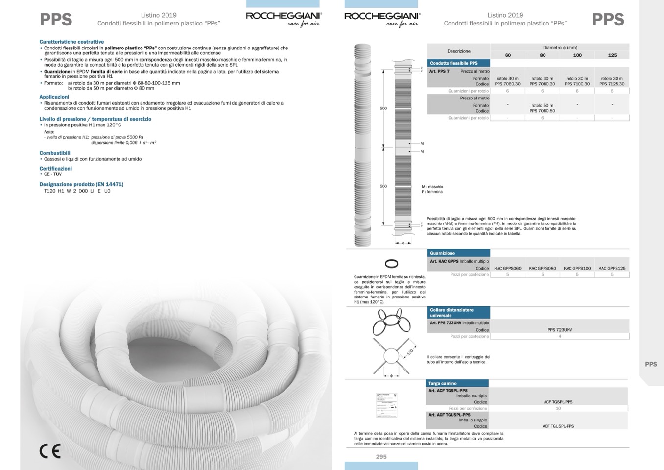 • Condotti flessibili circolari in polimero plastico “PPs” con costruzione continua (senza giunzioni o aggraffature) che