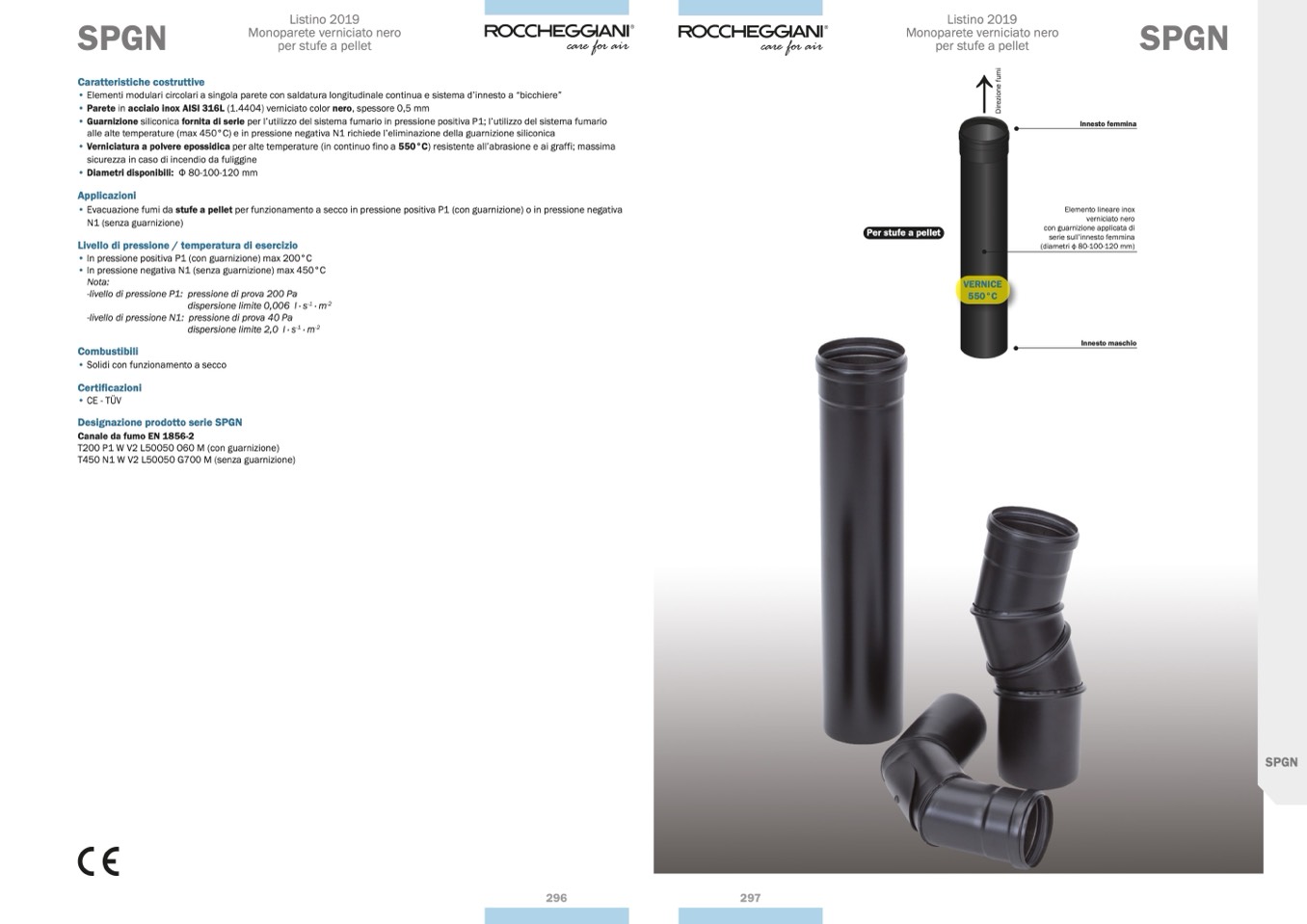 • Evacuazione fumi da stufe a pellet per funzionamento a secco in pressione positiva P1 (con guarnizione) o in pressione negativa