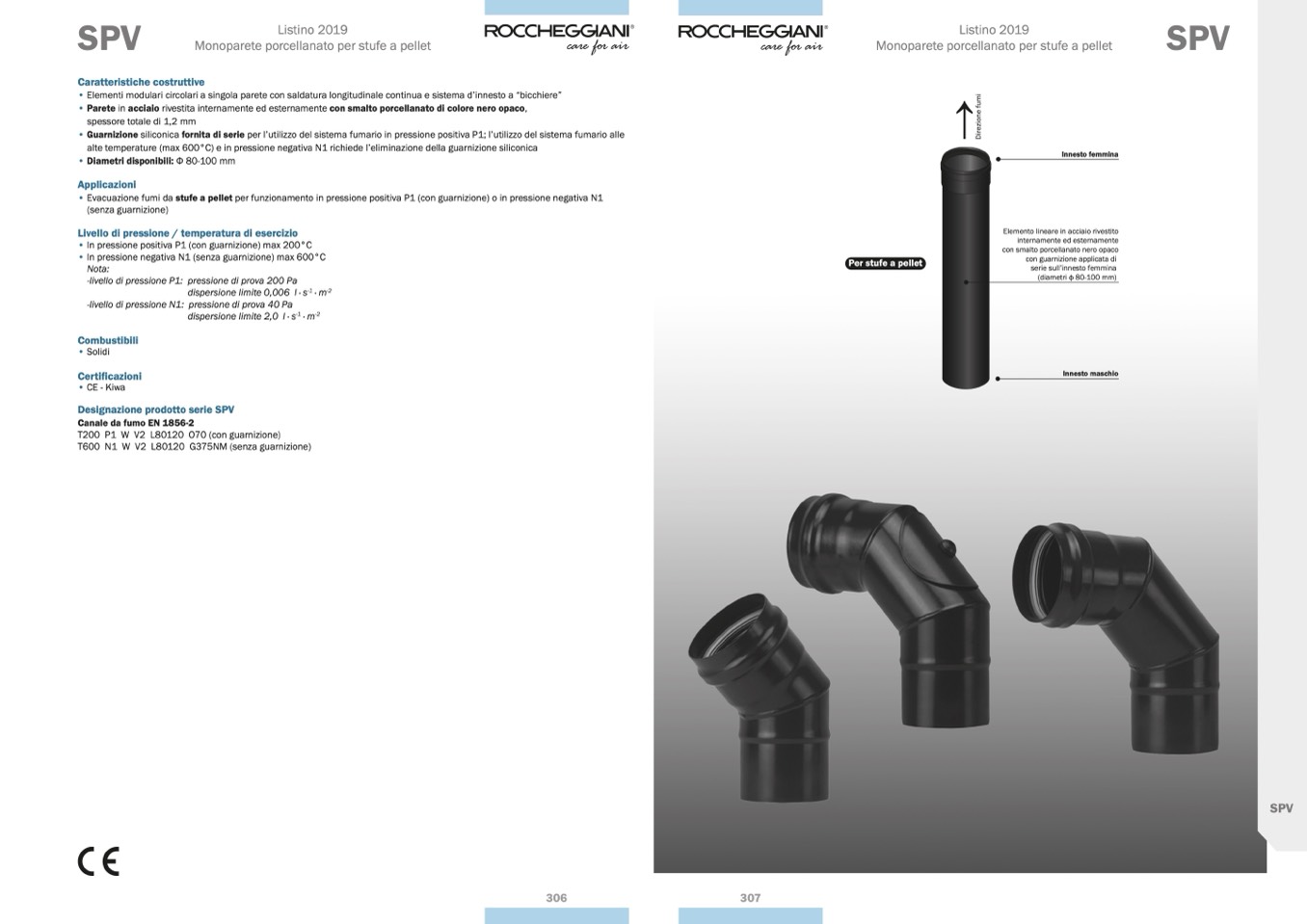 • Evacuazione fumi da stufe a pellet per funzionamento in pressione positiva P1 (con guarnizione) o in pressione negativa N1