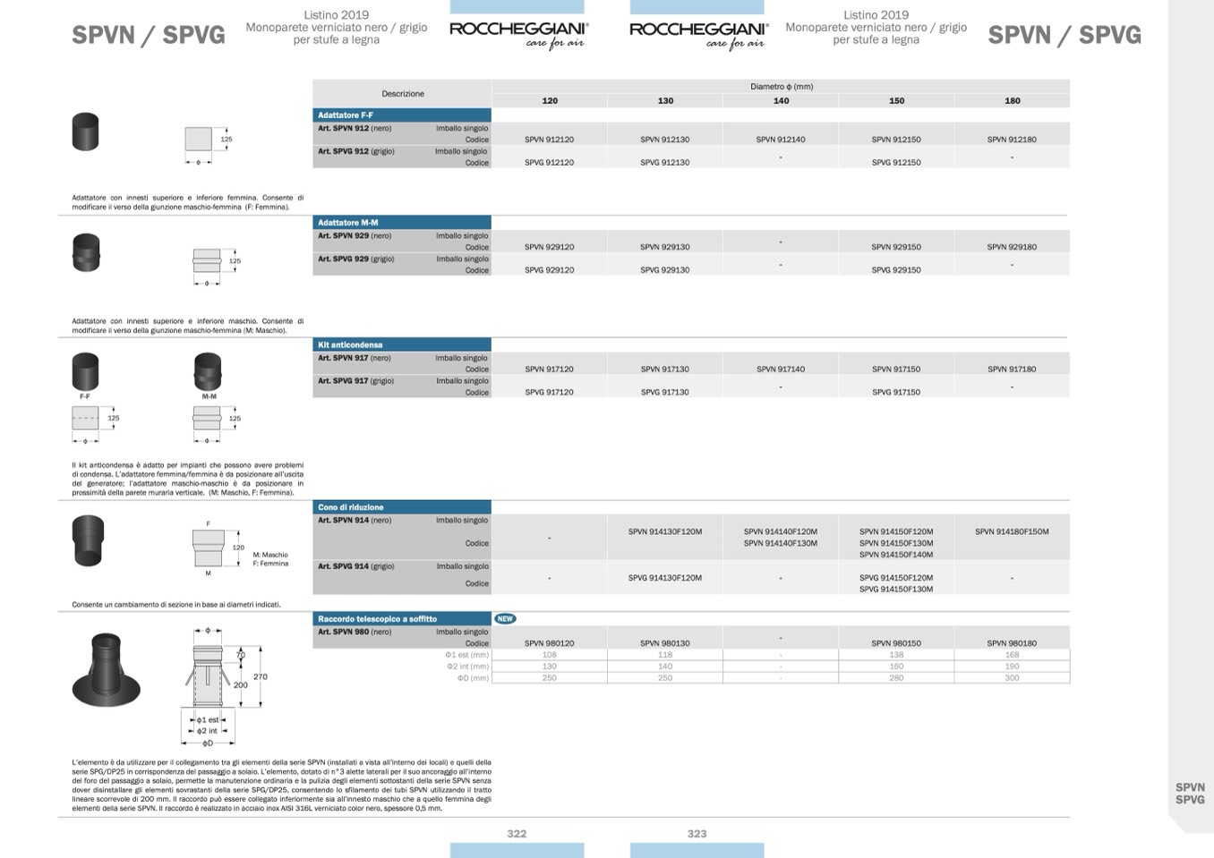 elementi della serie SPVN. Il raccordo è realizzato in acciaio inox AISI 316L verniciato color nero, spessore 0,5 mm.