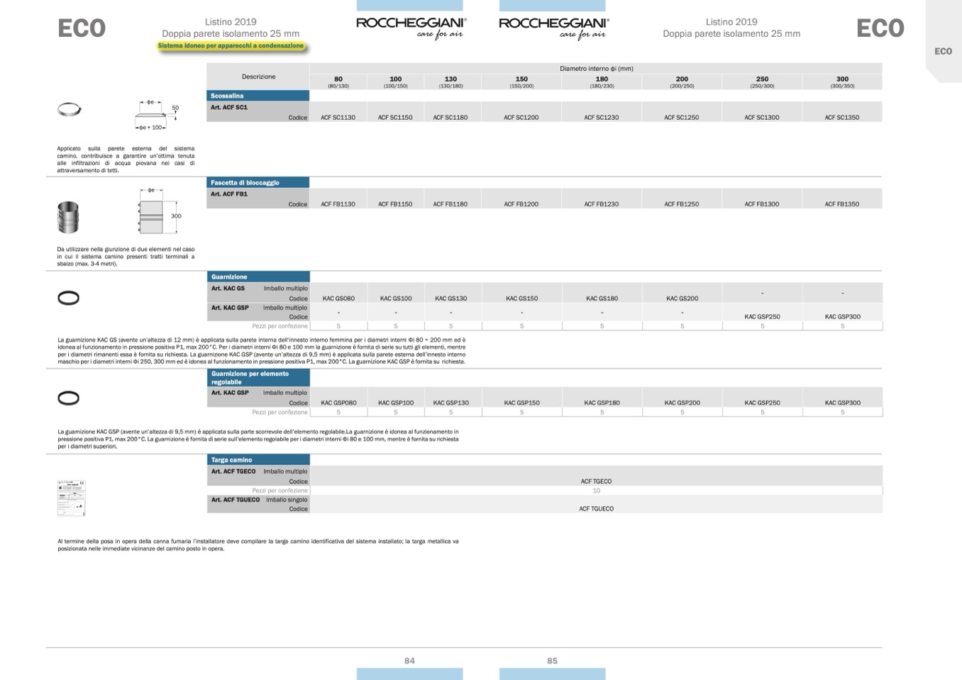 pressione positiva P1, max 200°C. La guarnizione è fornita di serie sull’elemento regolabile per i diametri interni Фi 80 e 100 mm, mentre è fornita su richiesta