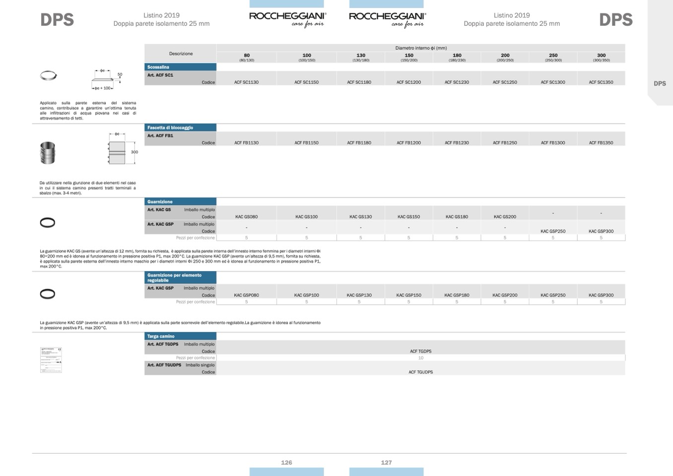 80÷200 mm ed è idonea al funzionamento in pressione positiva P1, max 200°C. La guarnizione KAC GSP (avente un’altezza di 9,5 mm), fornita su richiesta,