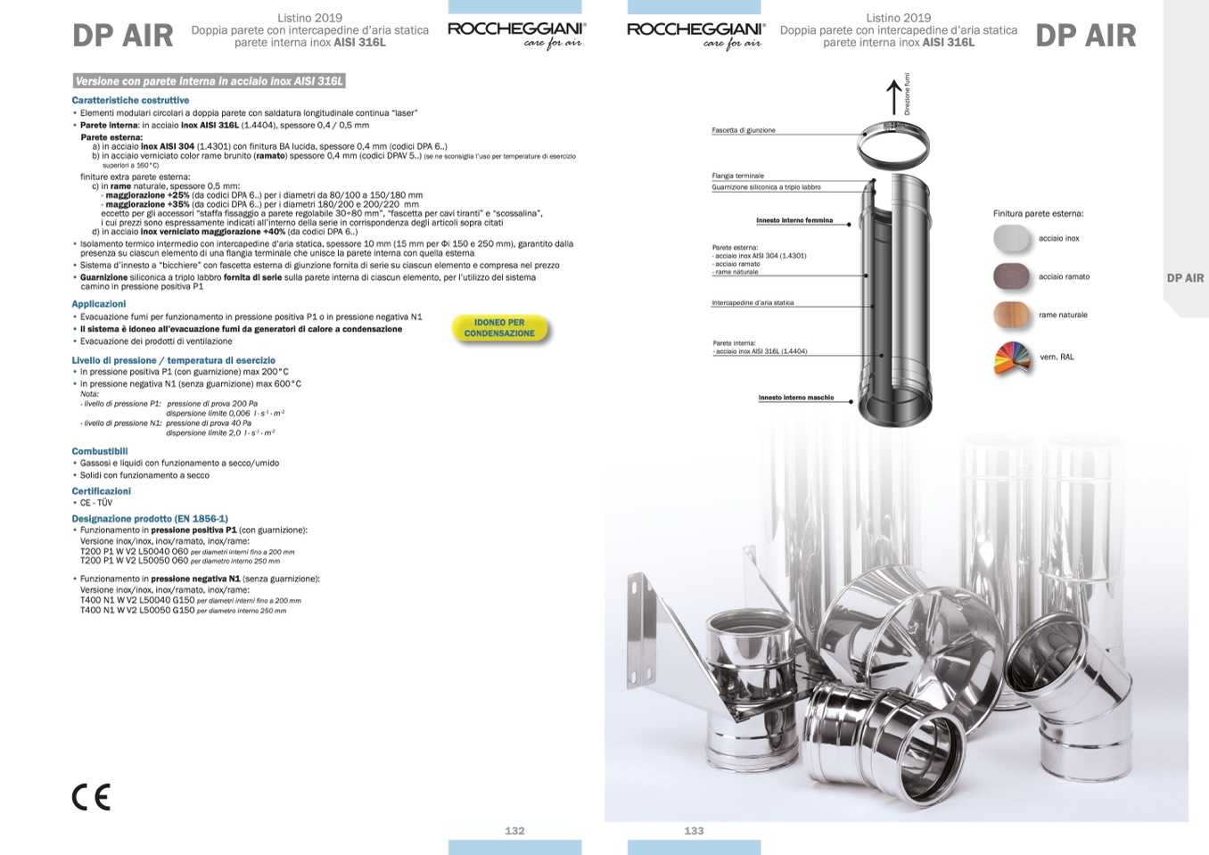 - maggiorazione +25% (da codici DPA 6..) per i diametri da 80/100 a 150/180 mm