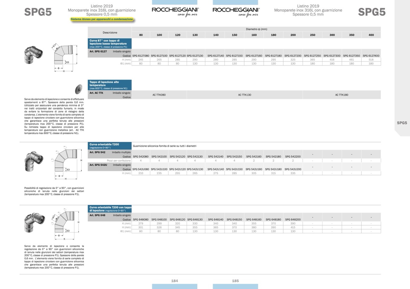 200°C, classe di pressione P1). Spessore della parete
