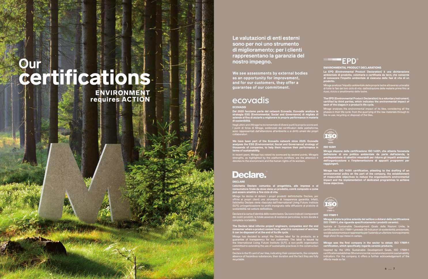 Mirage has ISO 14001 certification, attesting to the drafting of an