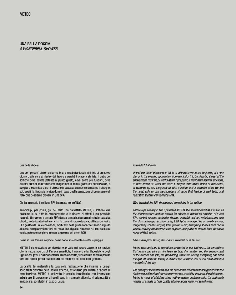 antoniolupi, per prima, già nel 2011, ha brevettato METEO, il soffione che
