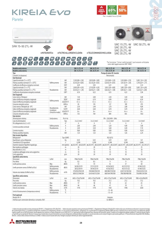 1. Valore misurato secondo la norma armonizzata EN14511. 2. Regolamento UE N.206/2012 - - Valore misurato secondo la norma armonizzata EN14825. 3. Regolamento Delegato UE N.626/2011 relativo alla nuova etichettatura indicante il consumo di energia