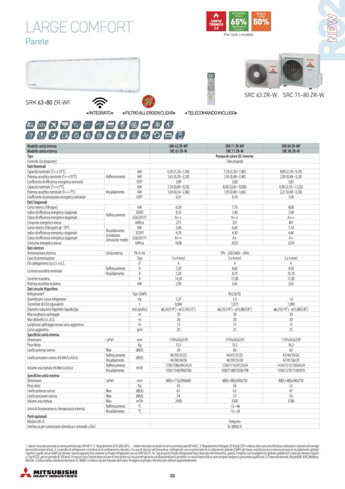 1. Valore misurato secondo la norma armonizzata EN14511. 2. Regolamento UE N.206/2012 - - Valore misurato secondo la norma armonizzata EN14825. 3. Regolamento Delegato UE N.626/2011 relativo alla nuova etichettatura indicante il consumo di energia