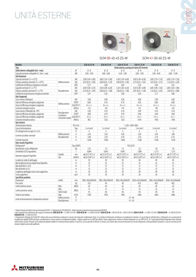 1. Valore misurato secondo la norma armonizzata EN14511. 2. Regolamento UE N.206/2012 - Valore misurato secondo la norma armonizzata EN14825.
