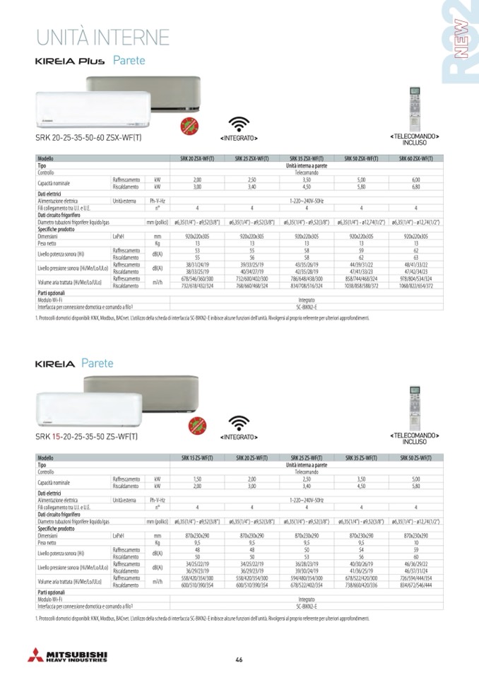 1. Protocolli domotici disponibili: KNX, Modbus, BACnet. L'utilizzo della scheda di interfaccia SC-BIKN2-E inibisce alcune funzioni dell'unità. Rivolgersi al proprio referente per ulteriori approfondimenti.