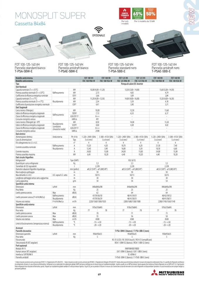 1. Valore misurato secondo la norma armonizzata EN14511. 2. Regolamento UE N.206/2012 - - Valore misurato secondo la norma armonizzata EN14825. 3. Regolamento Delegato UE N.626/2011 relativo alla nuova etichettatura indicante il consumo di energia dei condizionatori d'aria. 4. La perdita di refrigerante contribuisce