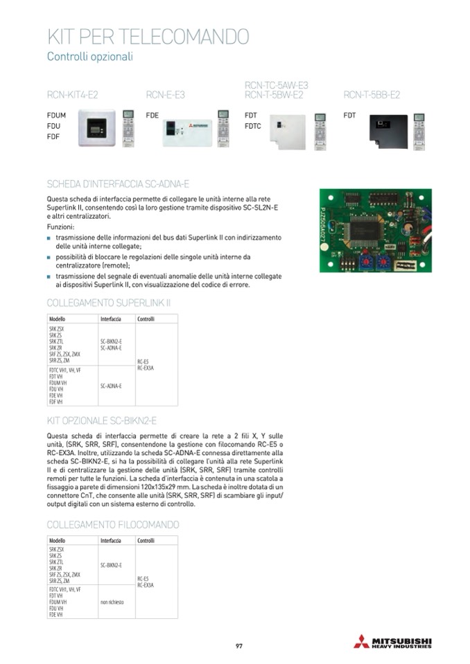 unità, (SRK, SRR, SRF), consentendone la gestione con filocomando RC-E5 o