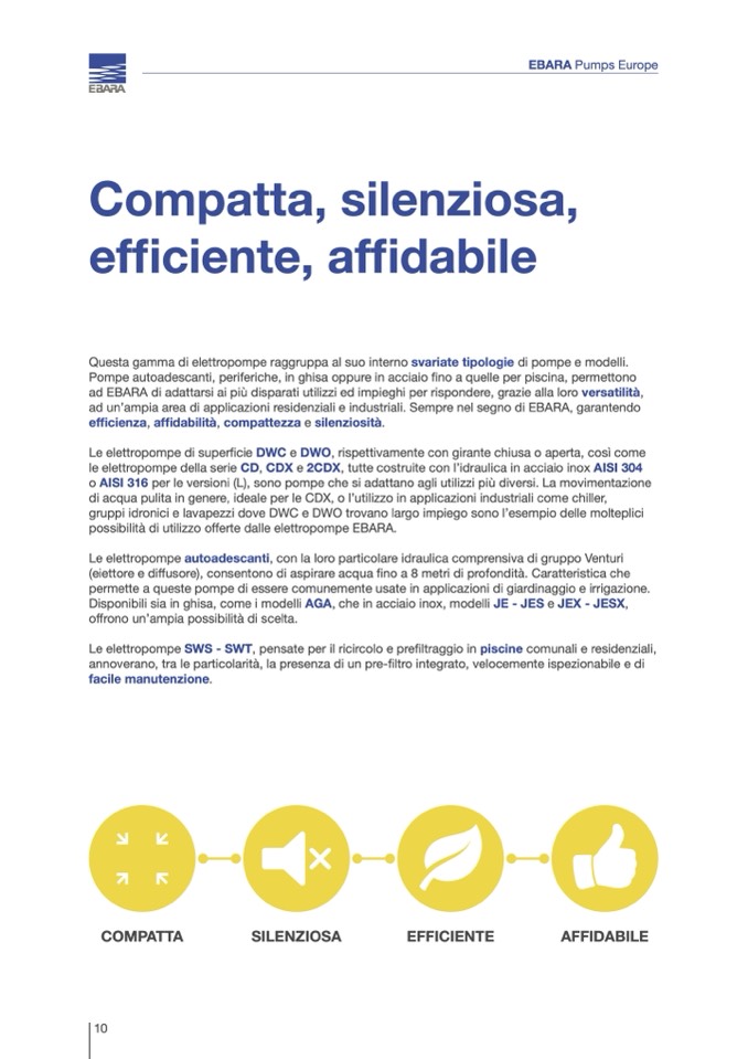 ad un’ampia area di applicazioni residenziali e industriali. Sempre nel segno di EBARA, garantendo