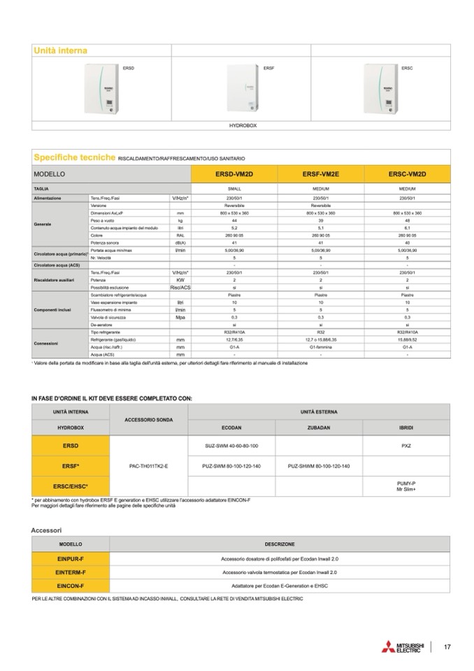 * per abbinamento con hydrobox ERSF E generation e EHSC utilizzare l’accessorio adattatore EINCON-F