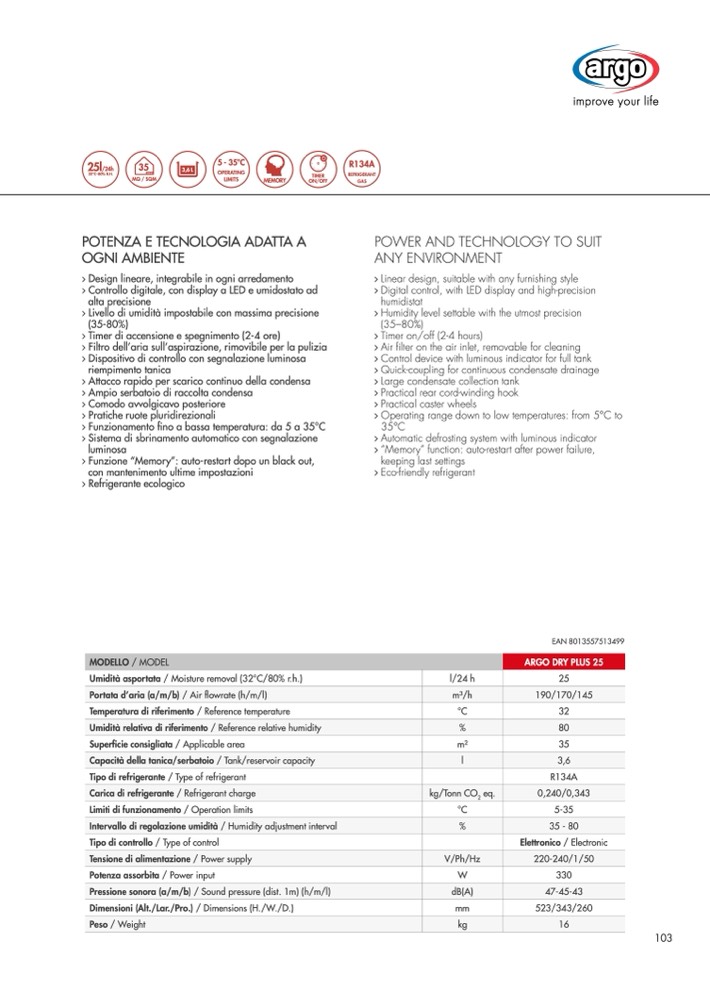 Umidità asportata / Moisture removal (32°C/80% r.h.)