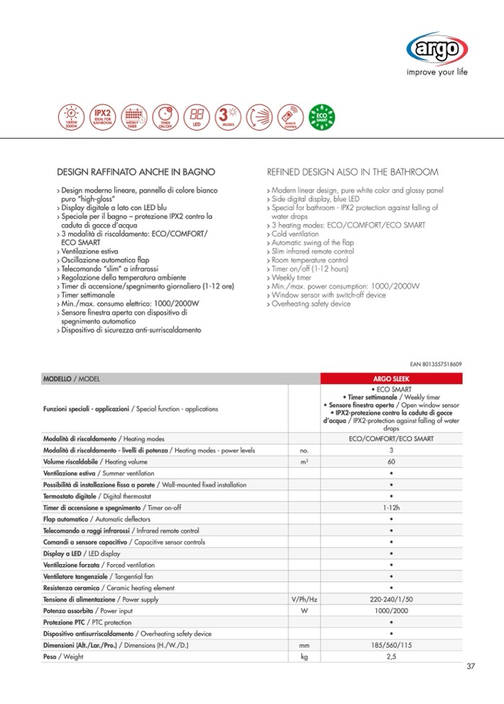 Possibilità di installazione fissa a parete / Wall-mounted fixed installation