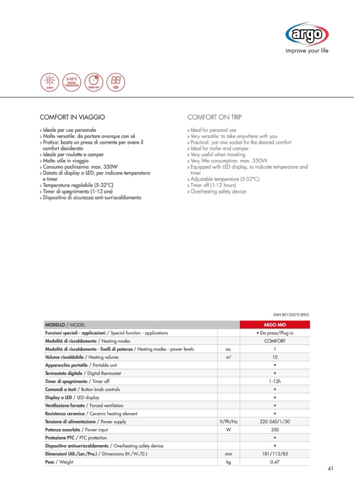 Dimensioni (Alt./Lar./Pro.) / Dimensions (H./W./D.)