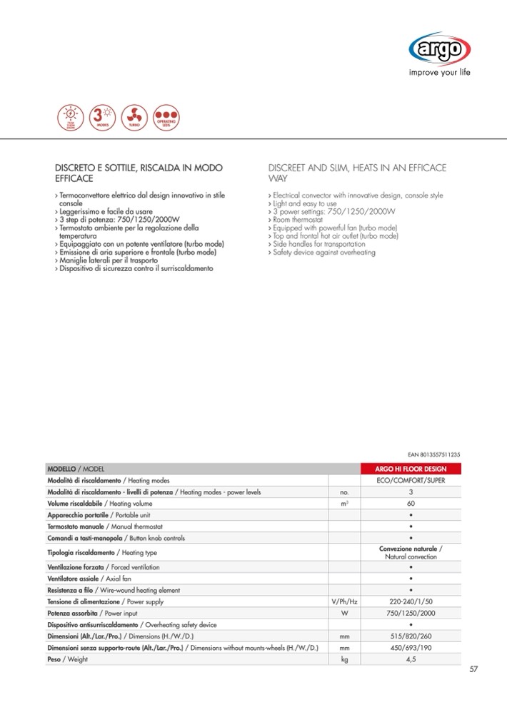 Dimensioni (Alt./Lar./Pro.) / Dimensions (H./W./D.)