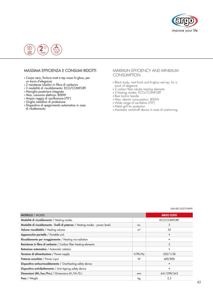 Dimensioni (Alt./Lar./Pro.) / Dimensions (H./W./D.)