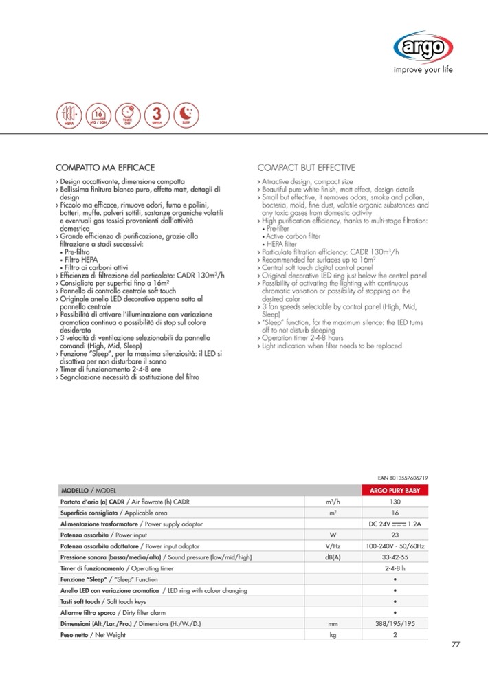 Small but effective, it removes odors, smoke and pollen,