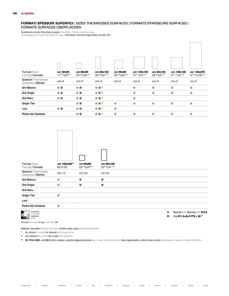 Caratteristiche tecniche Pietre Native a pagina: Pietre Native Technical features on page: