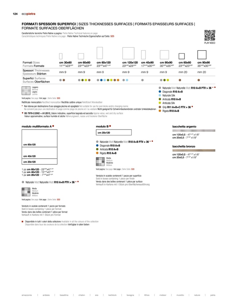 Caratteristiche tecniche Pietre Native a pagina: Pietre Native Technical features on page: