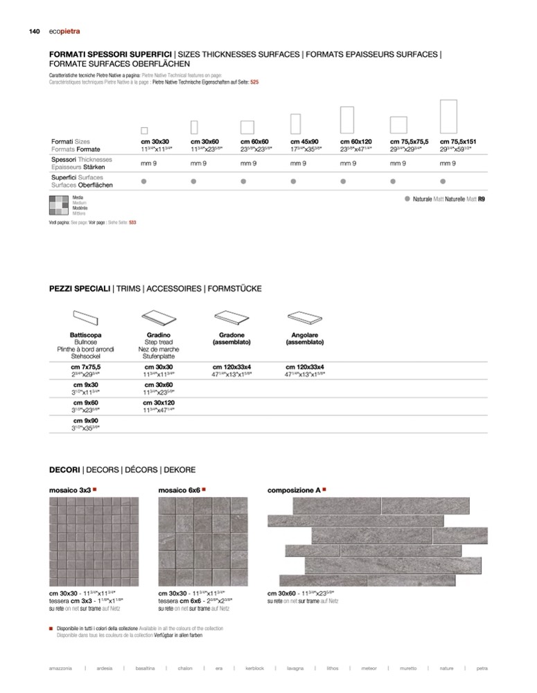 Caratteristiche tecniche Pietre Native a pagina: Pietre Native Technical features on page: