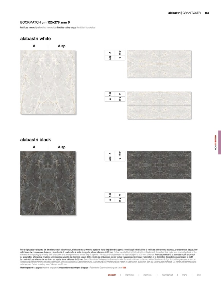 è soggetta ad una tolleranza di 20 mm. Before you start laying the Endmatch or Bookmatch decorative tiles, make sure to visually check all the