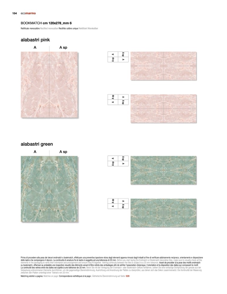 è soggetta ad una tolleranza di 20 mm. Before you start laying the Endmatch or Bookmatch decorative tiles, make sure to visually check all the