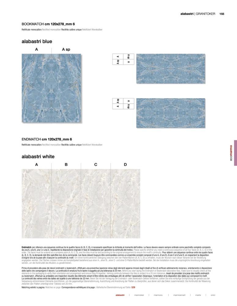 è soggetta ad una tolleranza di 20 mm. Before you start laying the Endmatch or Bookmatch decorative tiles, make sure to visually check all the