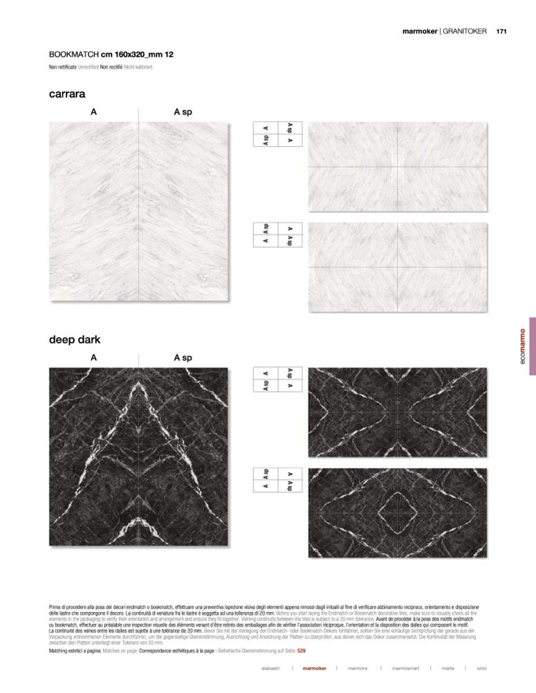 è soggetta ad una tolleranza di 20 mm. Before you start laying the Endmatch or Bookmatch decorative tiles, make sure to visually check all the
