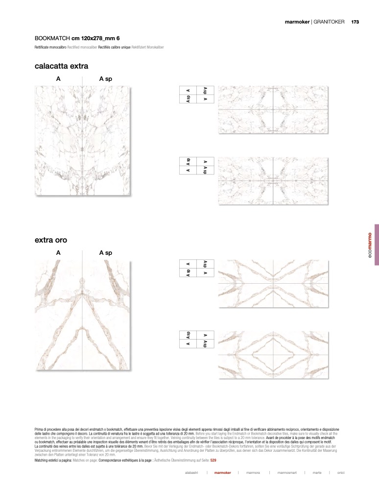 è soggetta ad una tolleranza di 20 mm. Before you start laying the Endmatch or Bookmatch decorative tiles, make sure to visually check all the