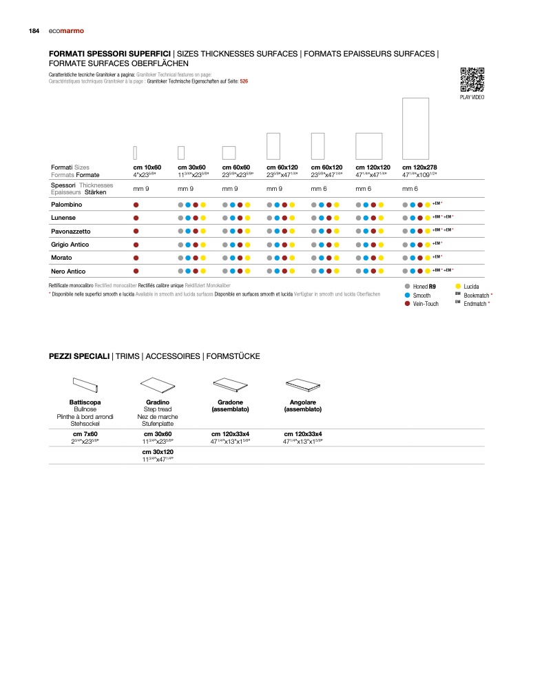 * Disponibile nelle superfici smooth e lucida Available in smooth and lucida surfaces Disponible en surfaces smooth et lucida Verf
