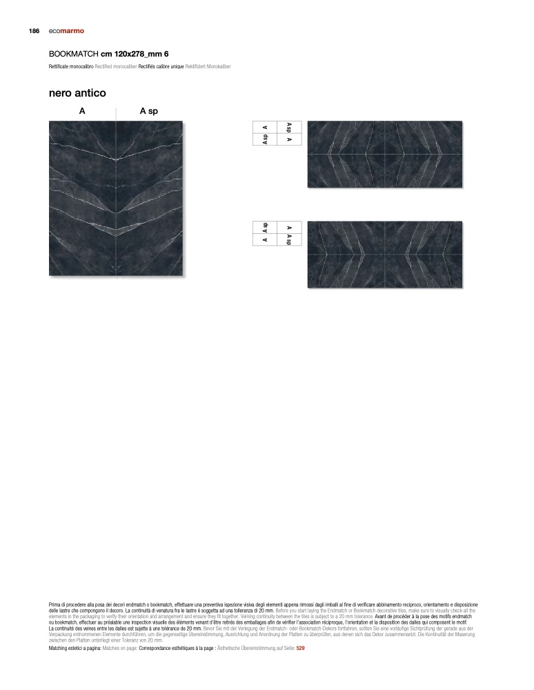 è soggetta ad una tolleranza di 20 mm. Before you start laying the Endmatch or Bookmatch decorative tiles, make sure to visually check all the