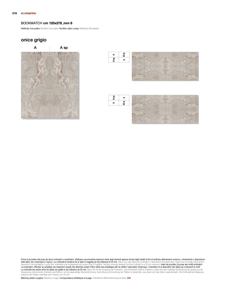 è soggetta ad una tolleranza di 20 mm. Before you start laying the Endmatch or Bookmatch decorative tiles, make sure to visually check all the