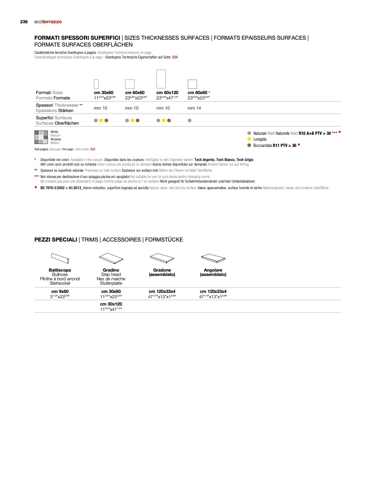 Caratteristiche tecniche Granitogres a pagina: Granitogres Technical features on page: