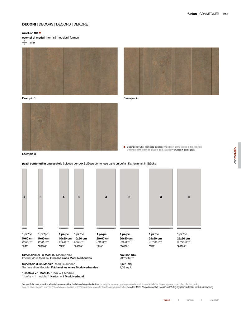 Per specifiche pezzi, moduli e schemi di posa consultare il relativo catalogo di collezione For weights, measures, package contents, modules and installation diagrams please consult the collection catalog