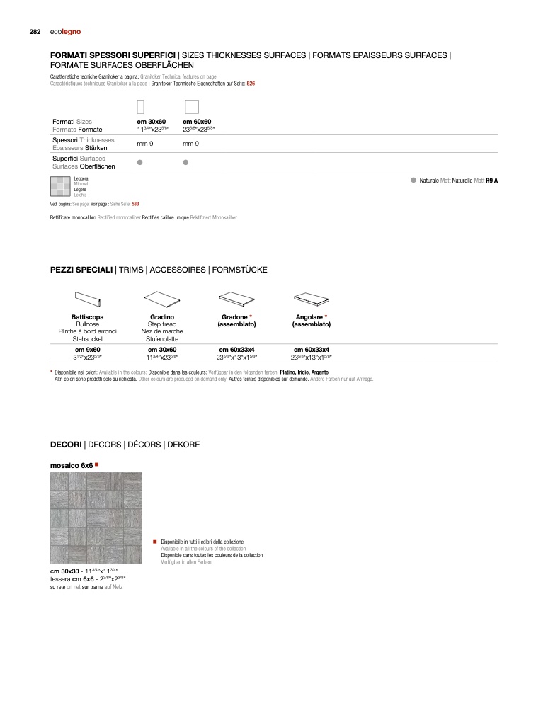 * Disponibile nei colori: Available in the colours: Disponible dans les couleurs: Verfügbar in den folgenden farben: Platino, Iridio, Argento