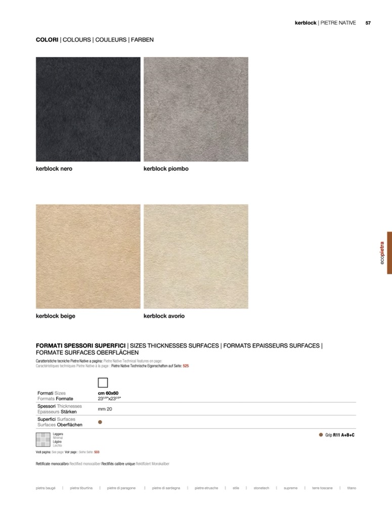 Caratteristiche tecniche Pietre Native a pagina: Pietre Native Technical features on page: