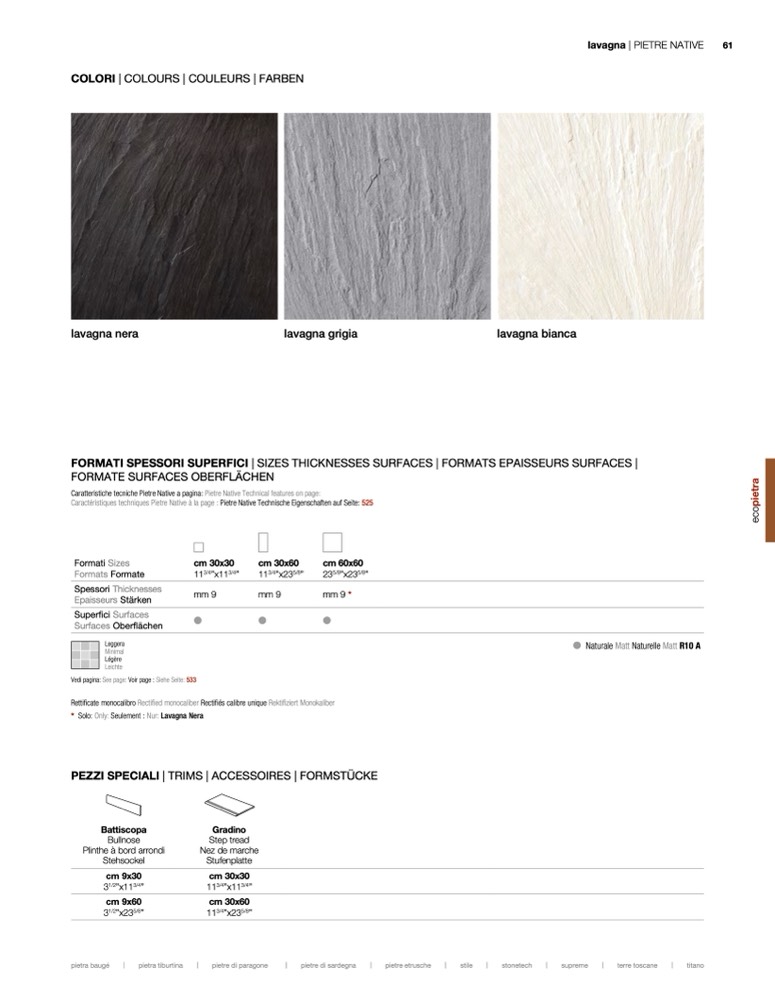 Caratteristiche tecniche Pietre Native a pagina: Pietre Native Technical features on page: