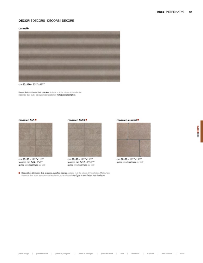 Disponibile in tutti i colori della collezione, superficie Naturale Available in all the colours of the collection, Matt surface