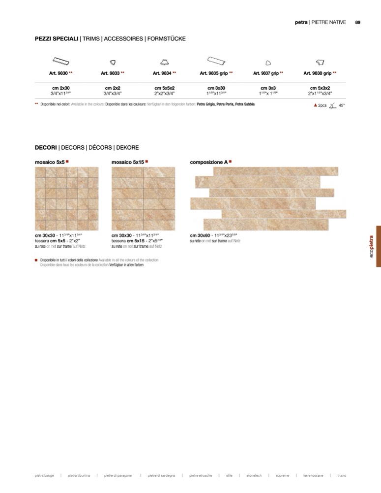 ügbar in den folgenden farben: Petra Grigia, Petra Perla, Petra Sabbia