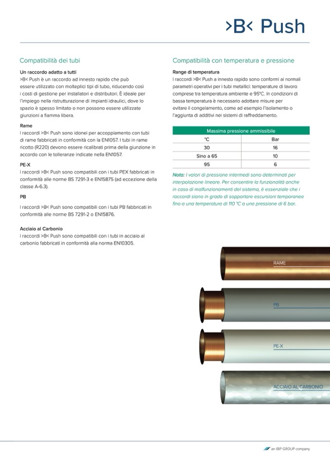 I raccordi >B< Push sono compatibili con i tubi PB fabbricati in