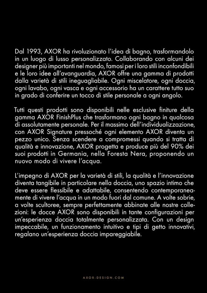 L’impegno di AXOR per la varietà di stili, la qualità e l’innovazione