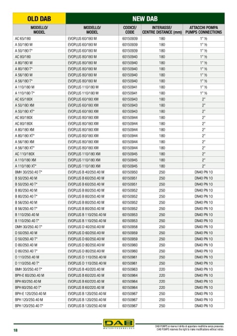 DAB PUMPS si riserva il diritto di apportare modifiche senza preavviso.