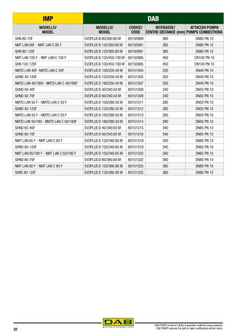 DAB PUMPS reserves the right to make modifications without notice.